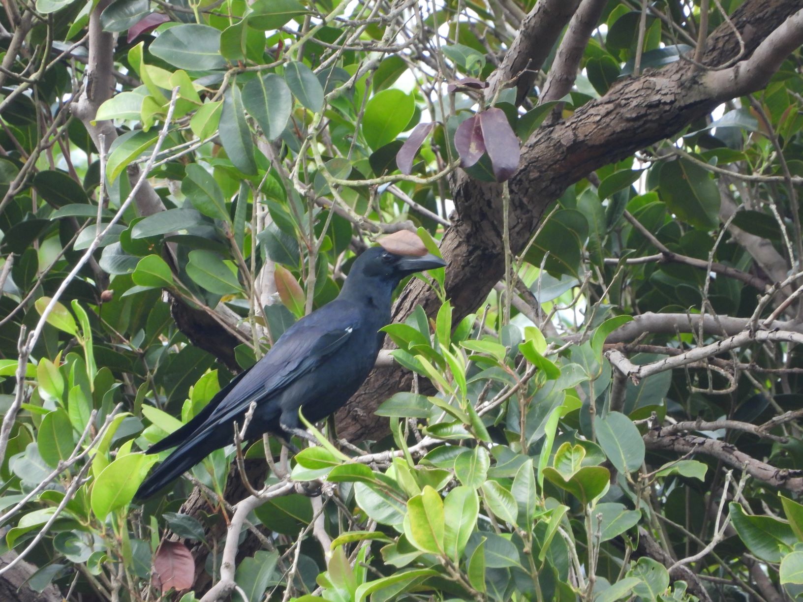 Memiliki ukuran tubuh keseluruhan dengan panjang: 46-59 cm, lebar sayap sekitar 100-130 cm. Memiliki paruh yang relatif panjang dengan paruh atas cukup tebal dan melengkung. Tubuhnya berwarna abu-abu gelap dari bagian belakang kepala, leher, bahu, dan tubuh bagian bawah. Sayap, ekor, wajah, dan tenggorokannya berwarna hitam mengkilap.